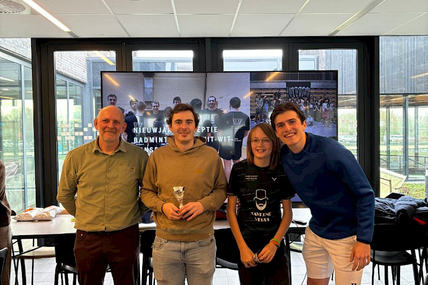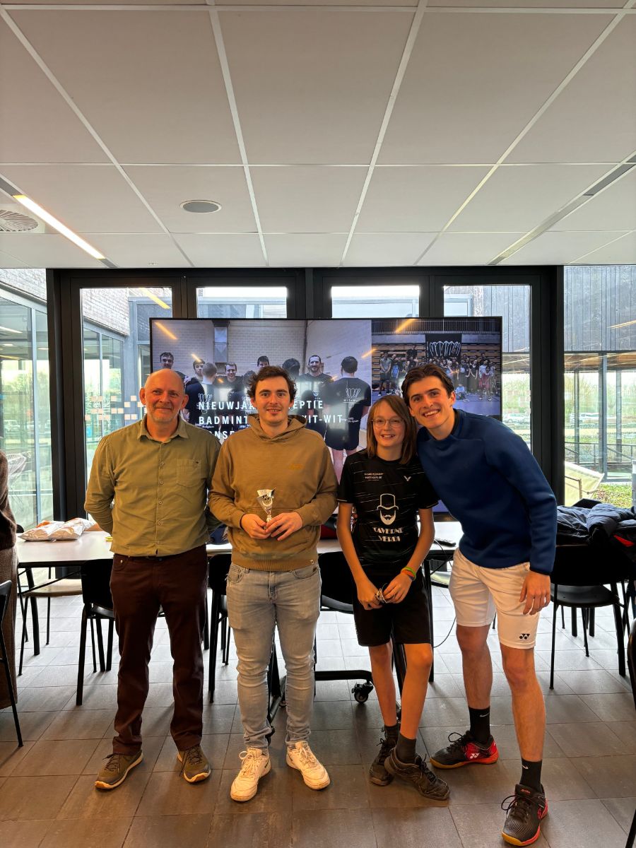Dit weekend vond het Belgisch kampioenschap plaats in Kortrijk. Flore veroverde daar als Wit-Witter haar 12e (!!) Belgische titel, zowel in het enkelspel als in het dubbelspel. Daarmee is ze nu pas de tweede vrouw ooit die alle drie de disciplines weet te winnen. Heel straf — proficiat, Flore! 🇧🇪🏆🥳 Ook andere Wit-Witters kwamen in actie. Mathieu en Brent bereikten samen de kwartfinale in het dubbelspel. In het enkelspel kwamen ze allebei ook in actie en wonnen ze elk hun eerste wedstrijd. Wannes en Ramon geraakten na een moeilijke loting helaas niet verder dan de eerste ronde. Mattias speelde een mooie match, maar verloor jammer genoeg in de eerste ronde van het enkelspel. Proficiat aan alle winnaars én aan alle deelnemers! 🤩👏